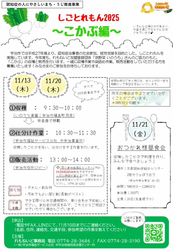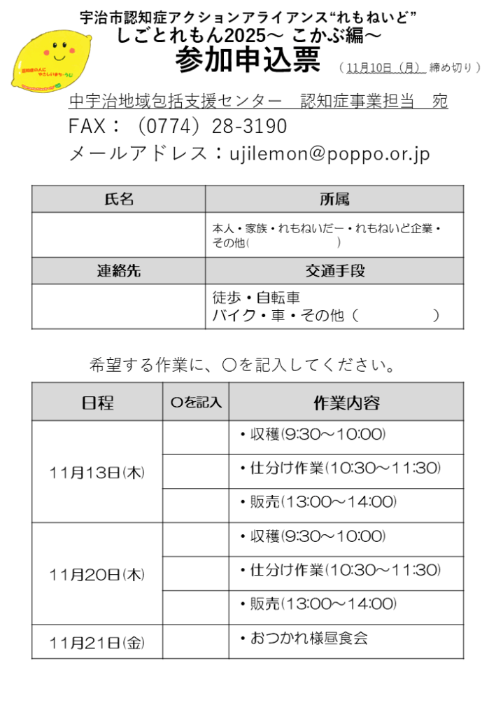 「れもねいど事務局」 電話:0774-28-3686 FAX:0774-28-3190