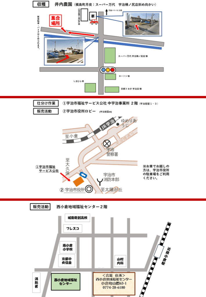 場所:収穫と仕分けは、場所が違います。地図をご確認ください。
